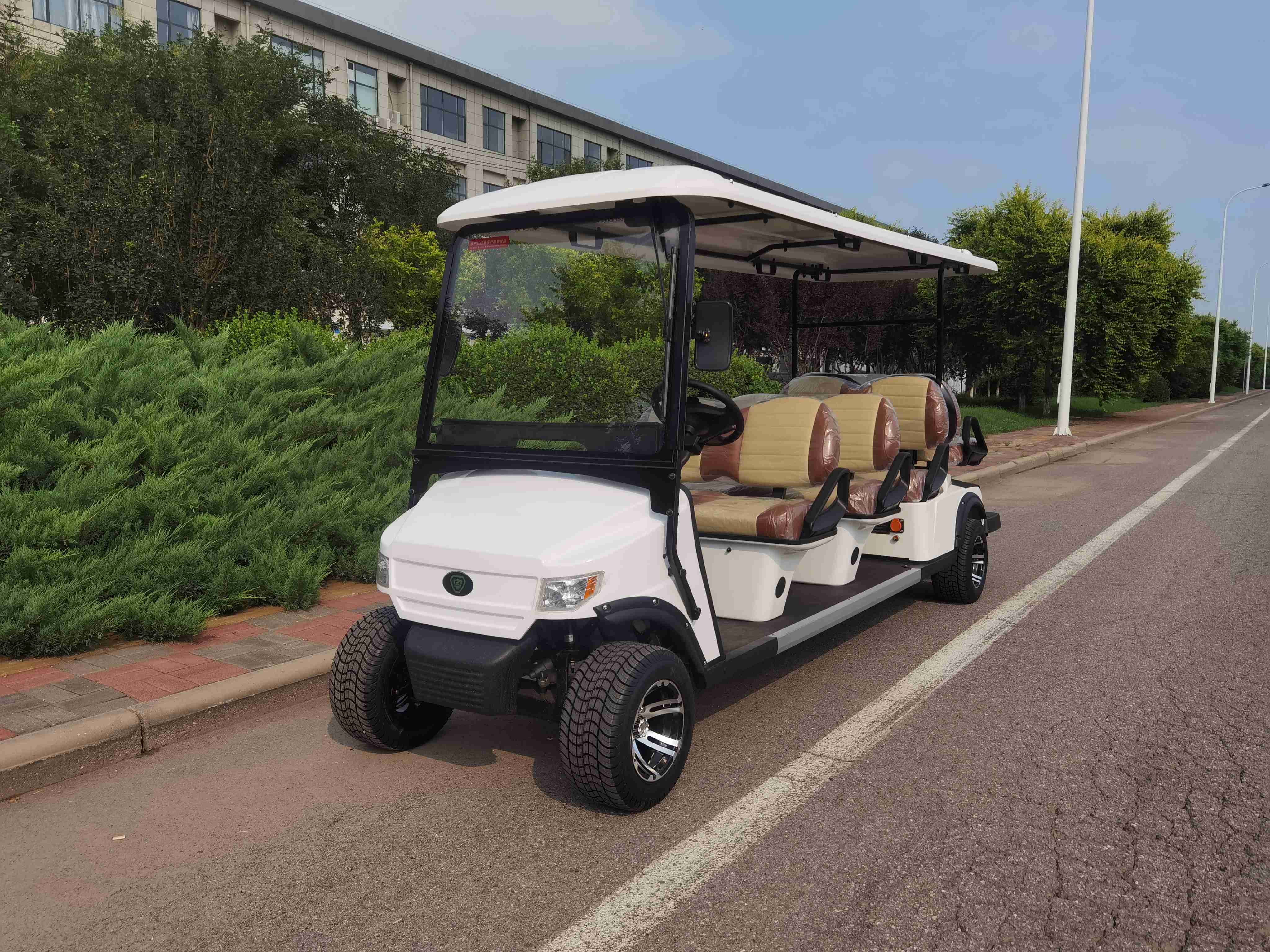 1.简约抗造,定制灵活:注塑覆盖件抗老化、抗紫外线,长时间用不易开裂;线条流畅,配色可定制;模块化车身,维修成本低;三排6座布局,适配球场、景区、酒店接驳;转弯半径小,狭窄路段穿梭自如。
