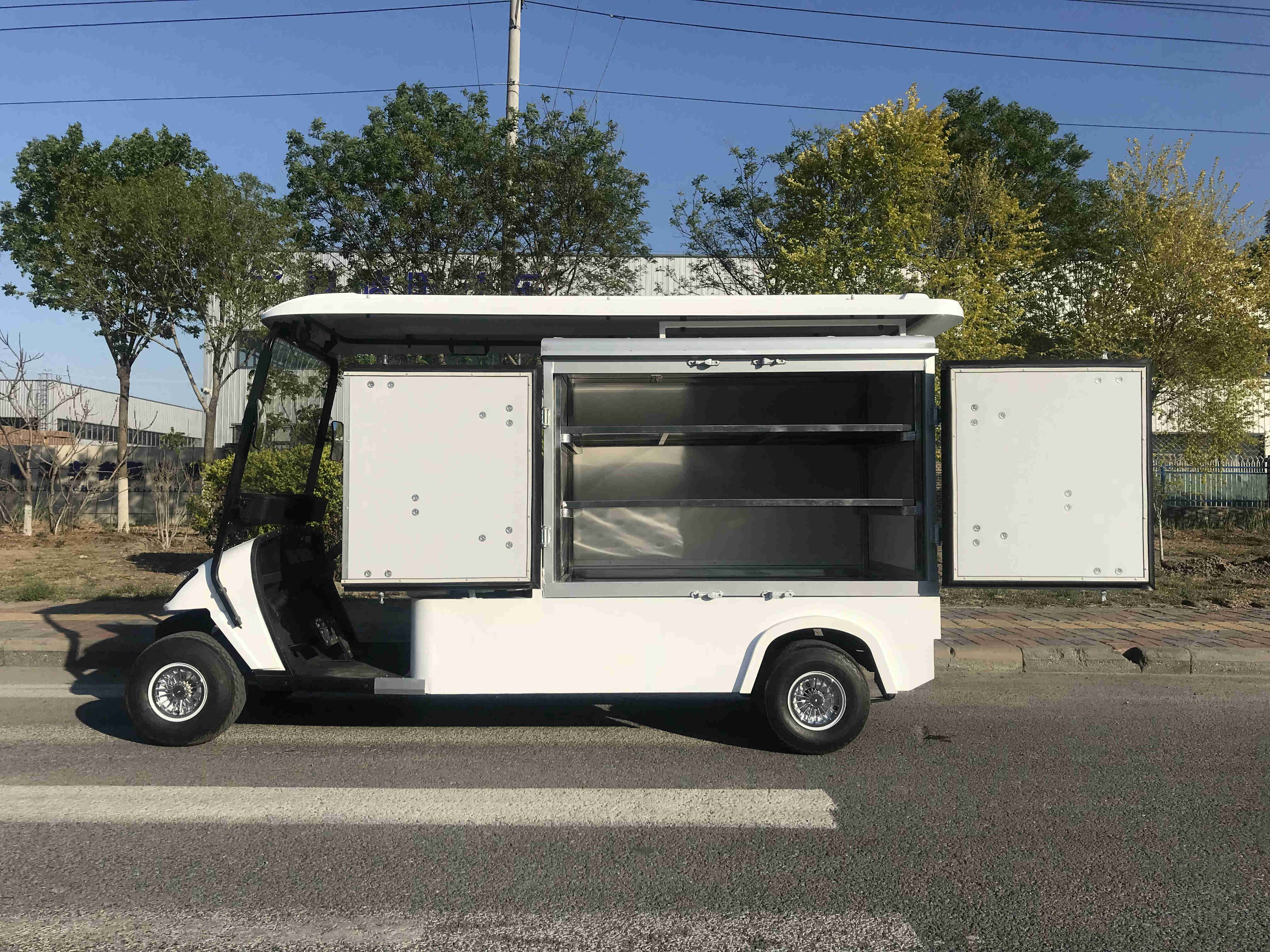 电动小型送餐车适用于工地送餐、校园送餐、等一系列送餐服务。电动送餐车可以对餐品进行保温,并且能够更快速的运送更多的餐品。电动送餐车使用电池带动动力,更加节能环保,从而提高送餐质量,不仅能够作为送餐车还能变成快递员的快递车,比起快递员骑着电动车带着一个大框子的快递而言,电动送餐车的车型更适合送快递。并且快递员雨天也相对来说更为方便和安全。