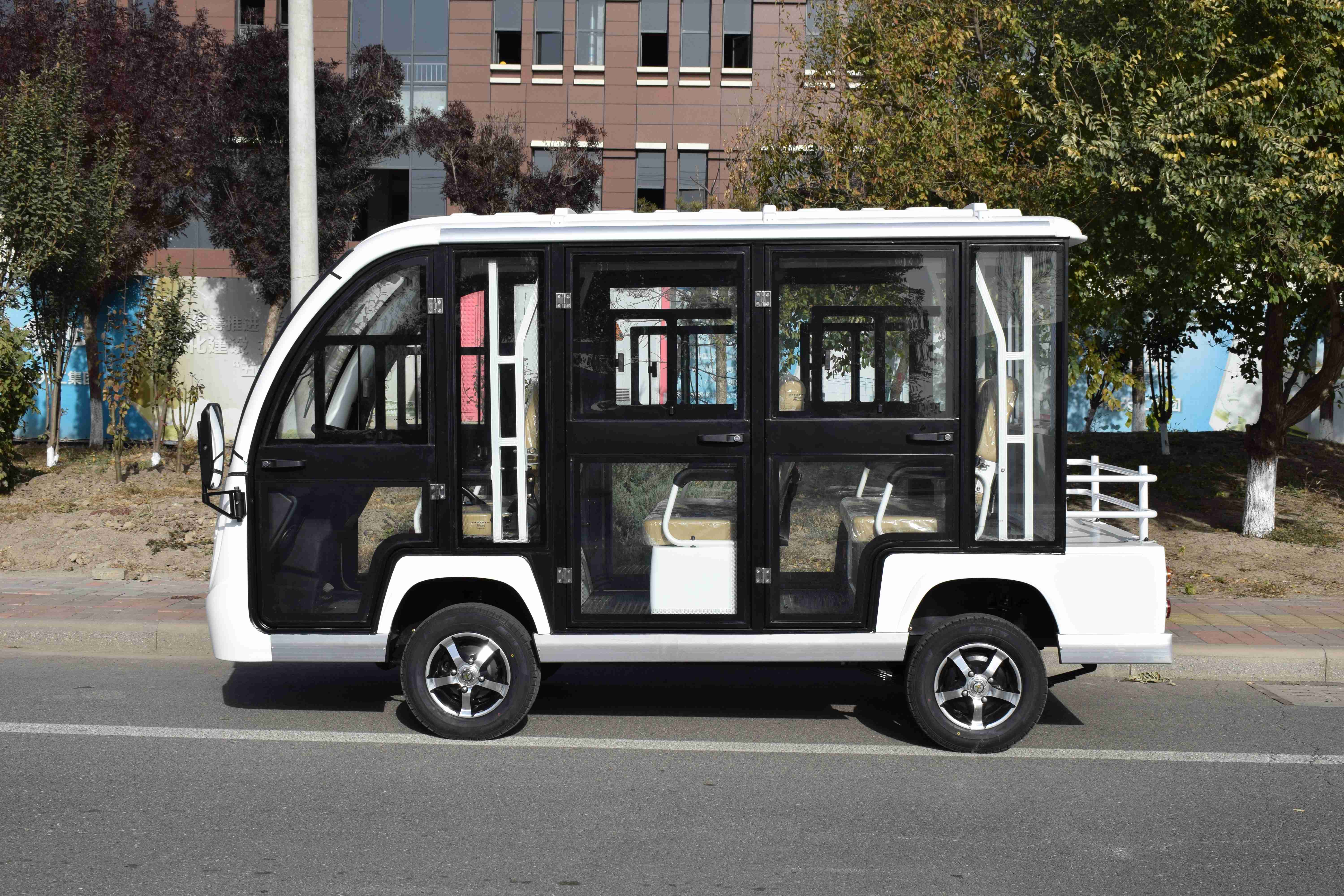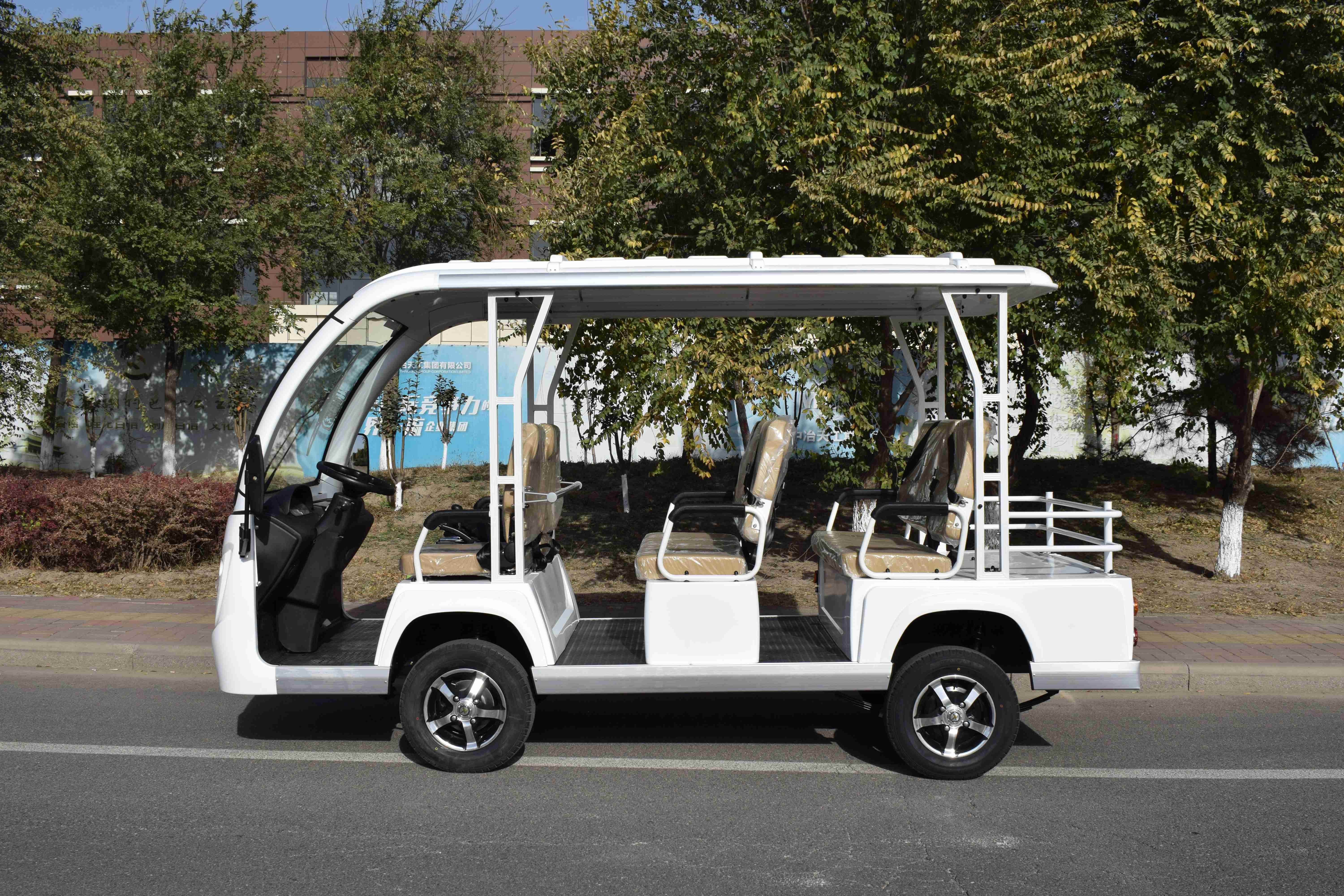 电动观光车与传统燃油观光车最大的区别在于我们的电动观光车使用动力电池,低碳环保无污染,耐久性好。它完全取代了使用燃油的发动机,相对燃油观光车来说不仅节能省钱,而且非常绿色环保。因为它对我们改善人类的生活环境意义重大。电动观光车通常是敞开式的,也可以定制成封闭式的,这样可以很好地满足游客的观光需求。屋顶上有遮阳棚,可以给游客带来很好的乘坐体验。观光车的内部结构也很简单,只有几排舒适的座椅,非常整洁有序。