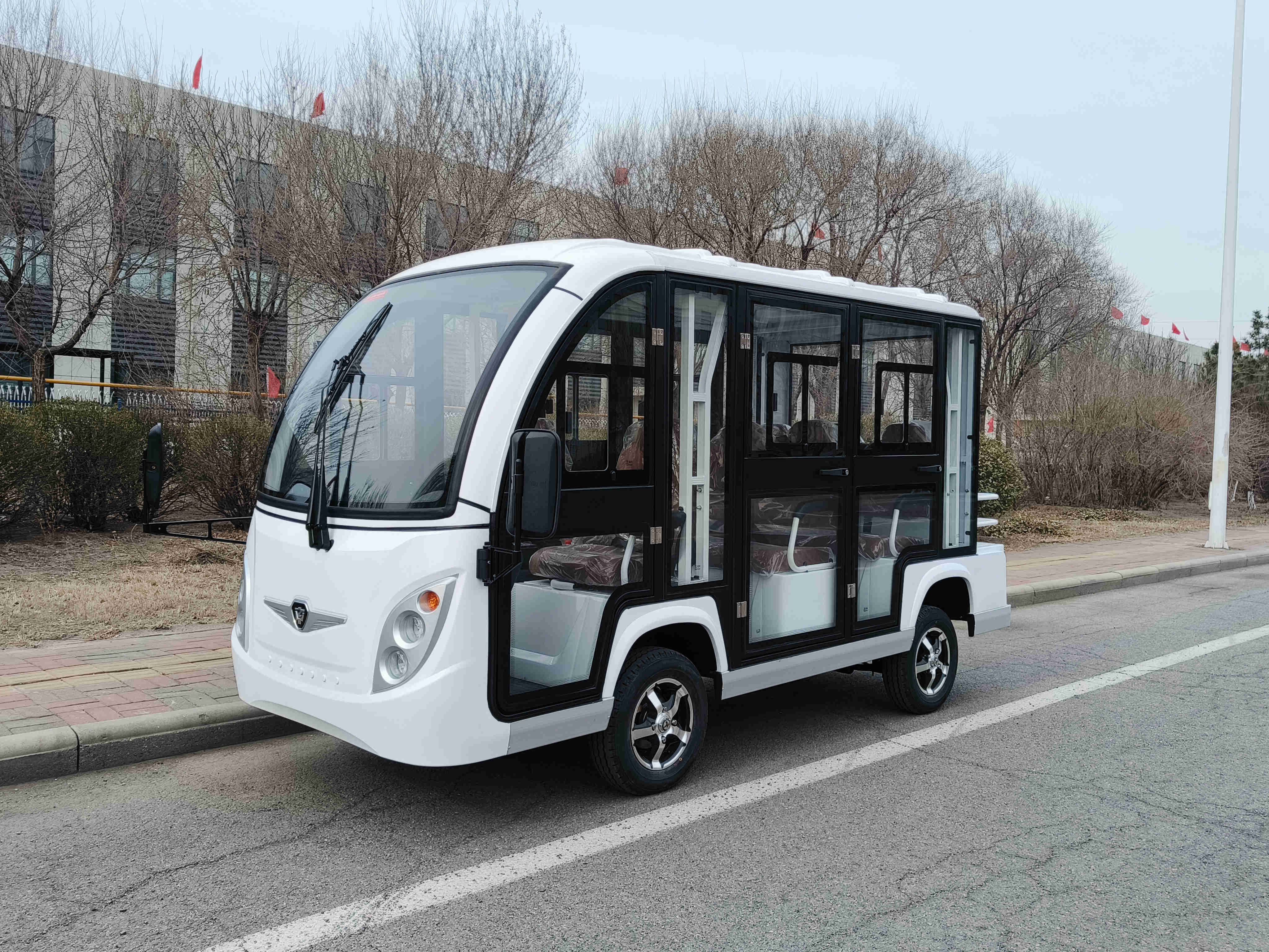 适配8座正向布局,座椅舒适带扶手;底盘平稳,可选空调、雨帘、定制涂装,适合景区、园区、校园等场内接驳使用。