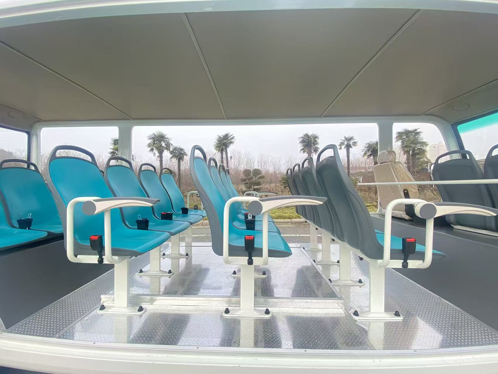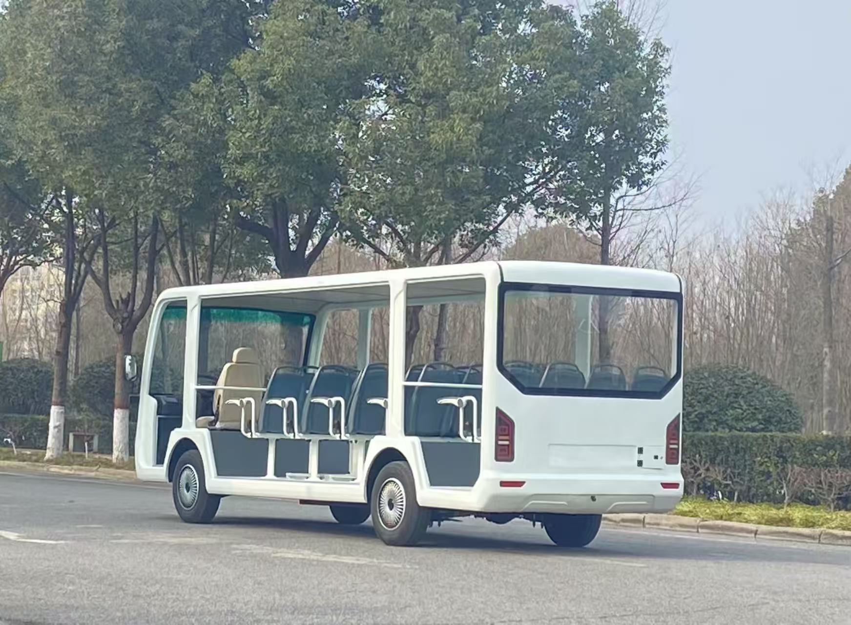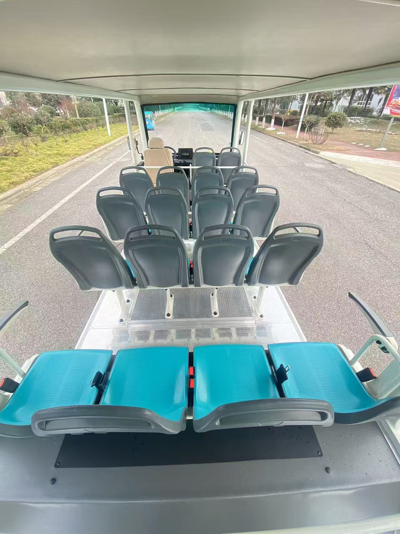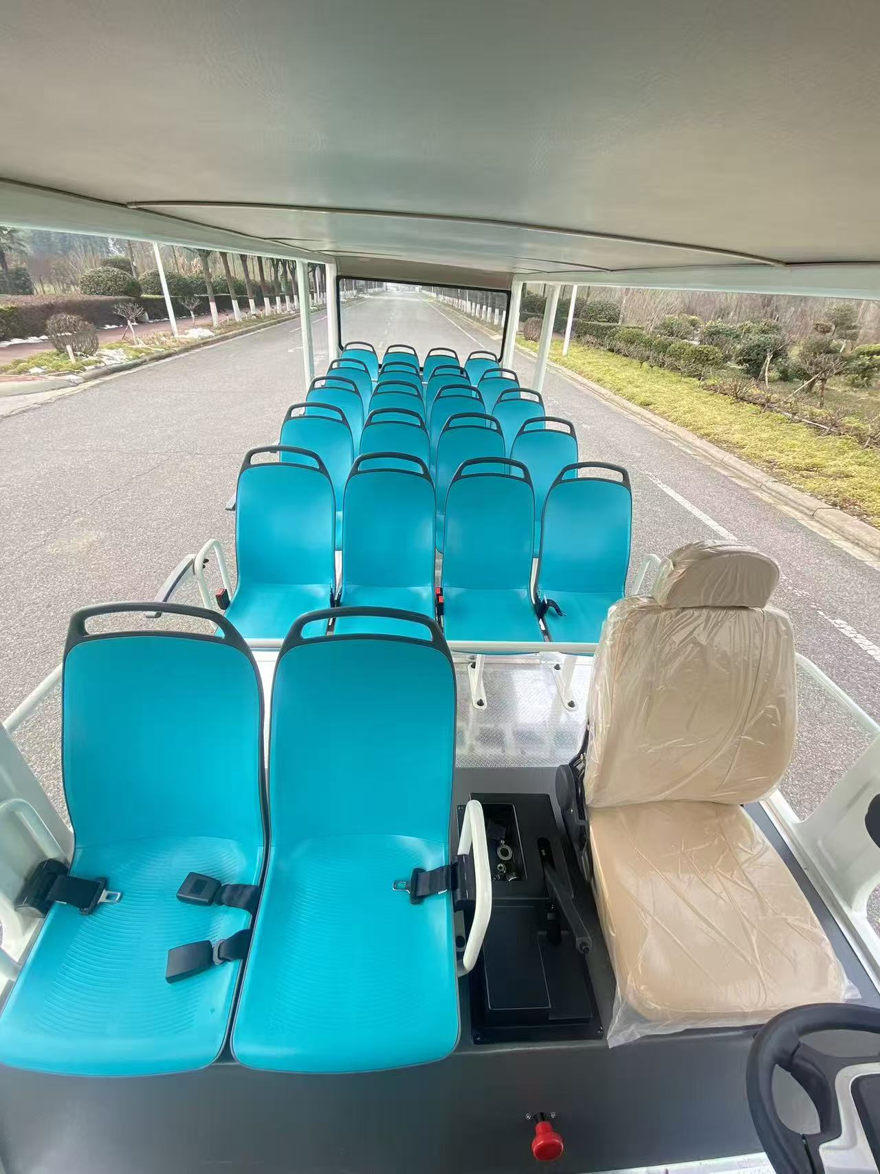 2.驱动系统:大功率交流永磁同步电机(常见 35kW 水冷),CURTIS / 英博尔高端电控;最高车速 30km/h(符合景区限速标准),满载最大爬坡度≥15%;